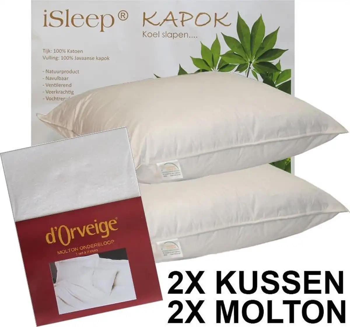 De kapok hoofdkussen set van iSleep biedt de perfecte oplossing voor een comfortabele en rustgevende nacht. De kussens zijn gemaakt van 100% Java kapok. Dit is een natuurlijk materiaal dat goed ademt en ventileert. Het zorgt ervoor dat je tijdens warme zomernachten koelt, blijft en niet overmatig zweet. Deze luxueuze kussens zijn daarnaast ook nog hypoallergeen, waardoor iedereen die last heeft van allergieën met een gerust hart kan genieten van deze kussens. Voor een iets hogere prijs krijg je dus een hoop terug met deze combikeuze van iSleep.