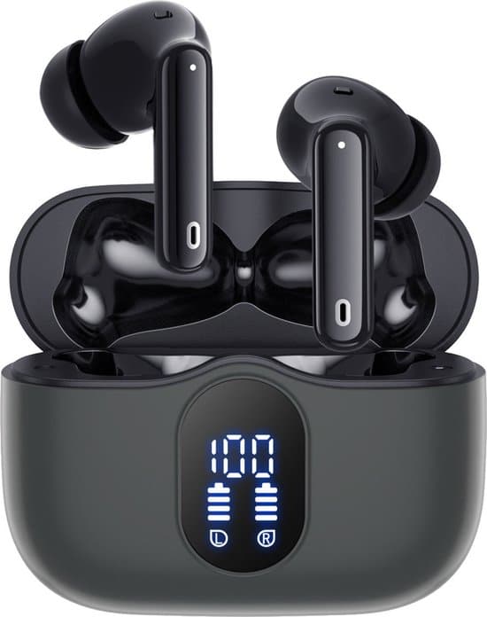 Deze draadloze oordopjes van Siltcon hebben een uitstekende prijs-kwaliteitverhouding. Ze zijn eenvoudig te verbinden via bluetooth, hebben noise canceling en bieden tot 40 uur luisterplezier zonder opladen. We vonden de geluidskwaliteit goed en zagen op de oplaadcase hoeveel procent batterij er nog over was.